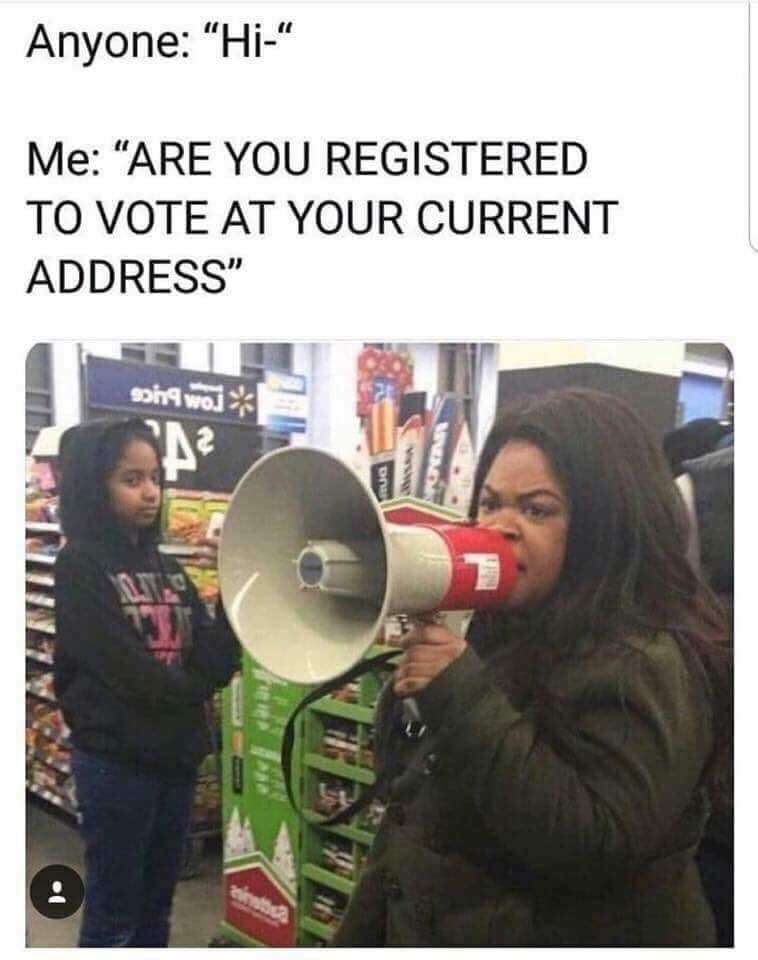 I have had this meme sent to me at least five times. Because my friends know me. They have seen me ask this question of complete strangers, seemingly out of the blue. I am passionate about voting-it’s the only way we have to make our system of government work for us.